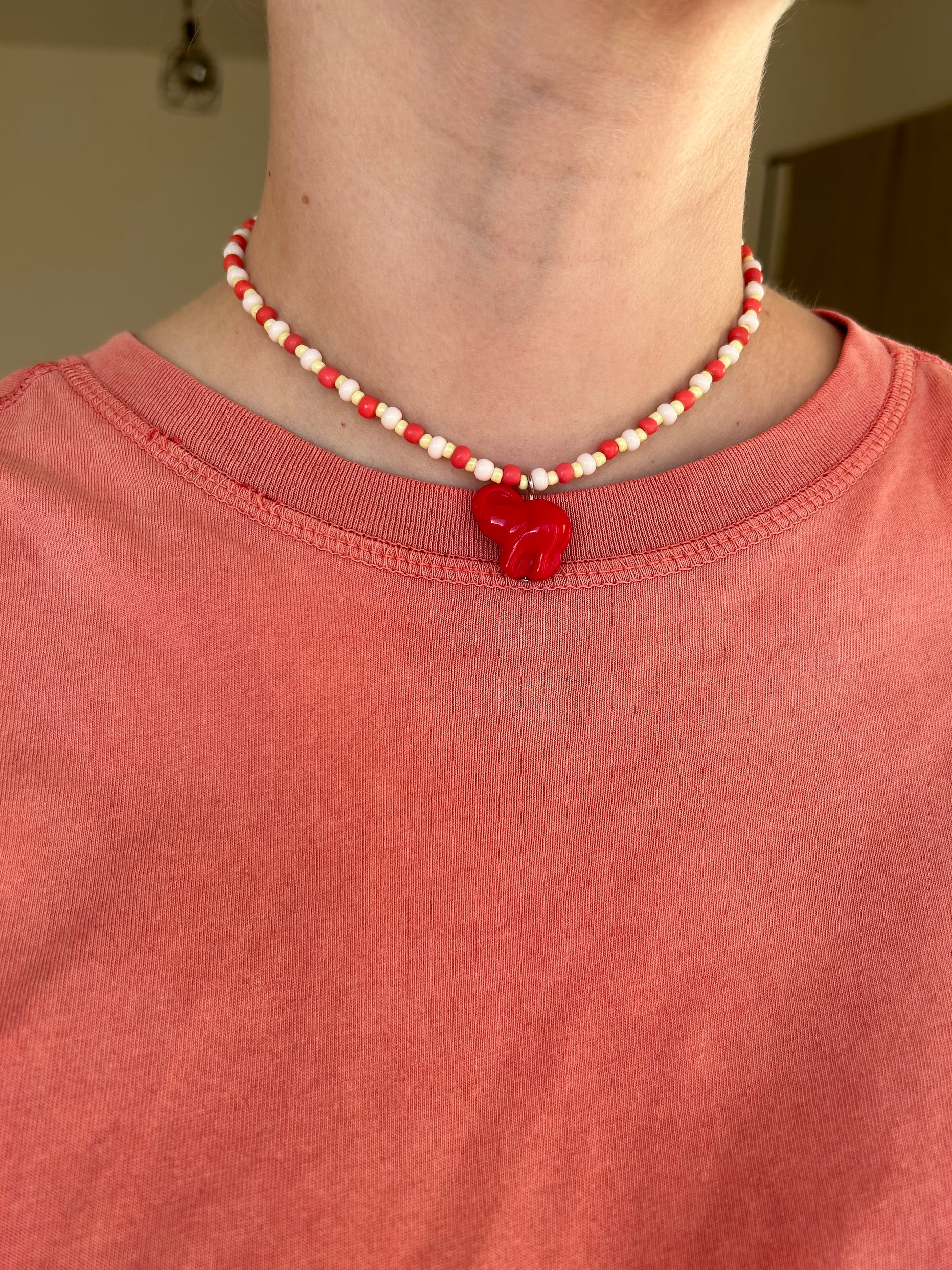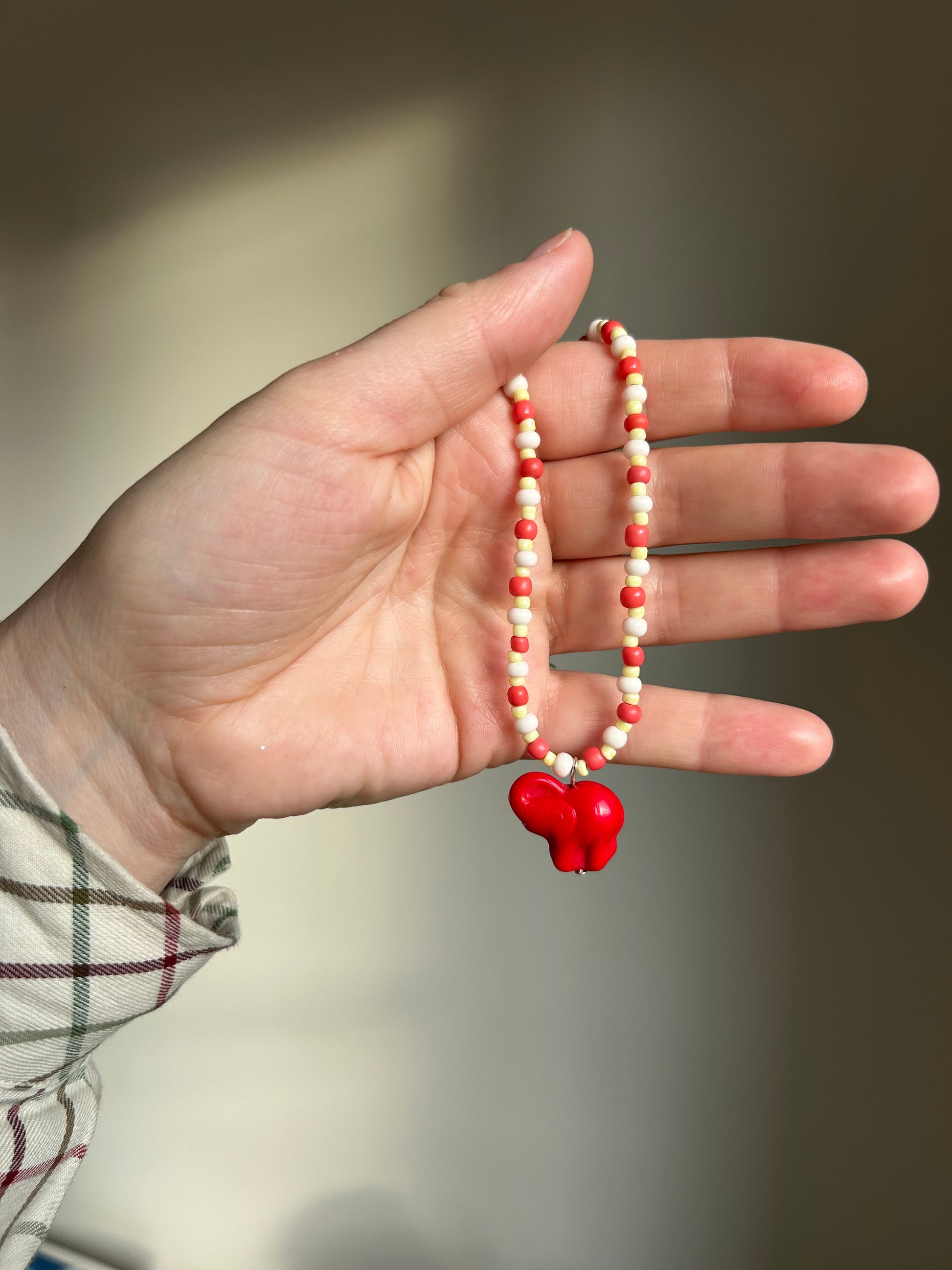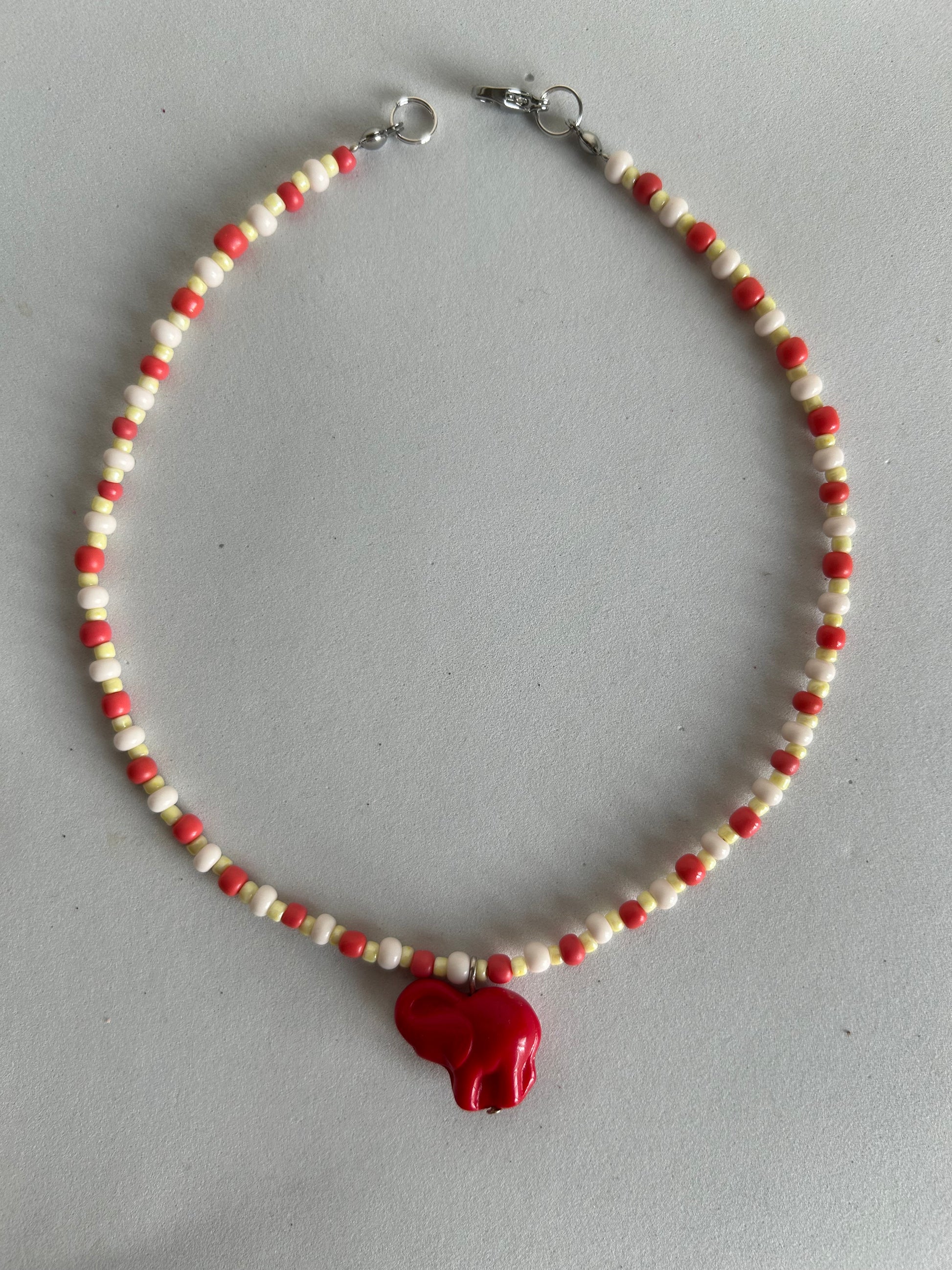 Meet your new pocket-sized protector: Little Lucky Elephant. This handmade necklace features cream and coral glass beads strung on ultra-durable stainless steel wire, finished with a lobster clasp that won’t quit. A playful charm with a tiny trunk and a huge heart.