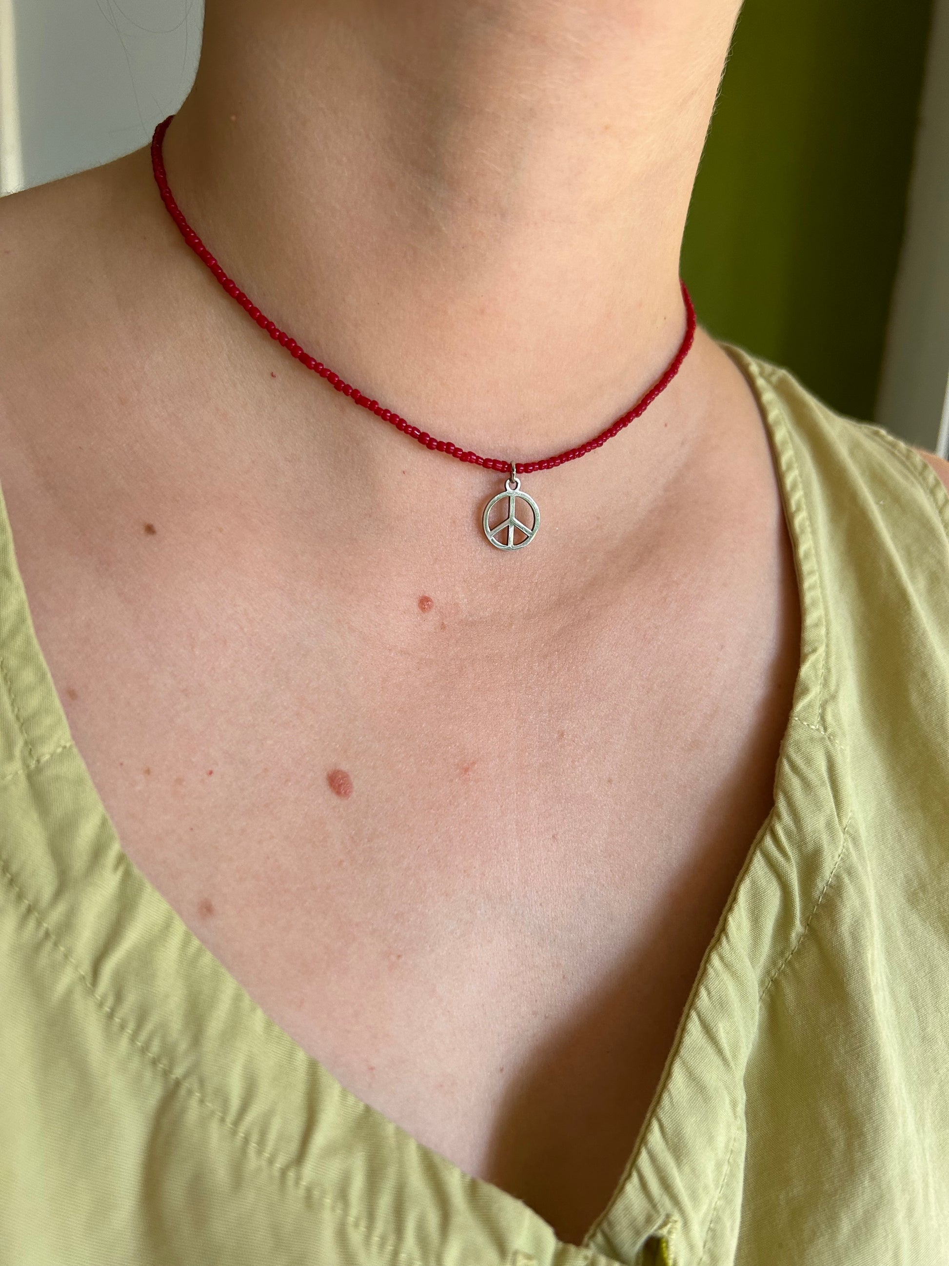 A unique piece that carries a message of harmony and love while adding a vibrant touch to your outfit.