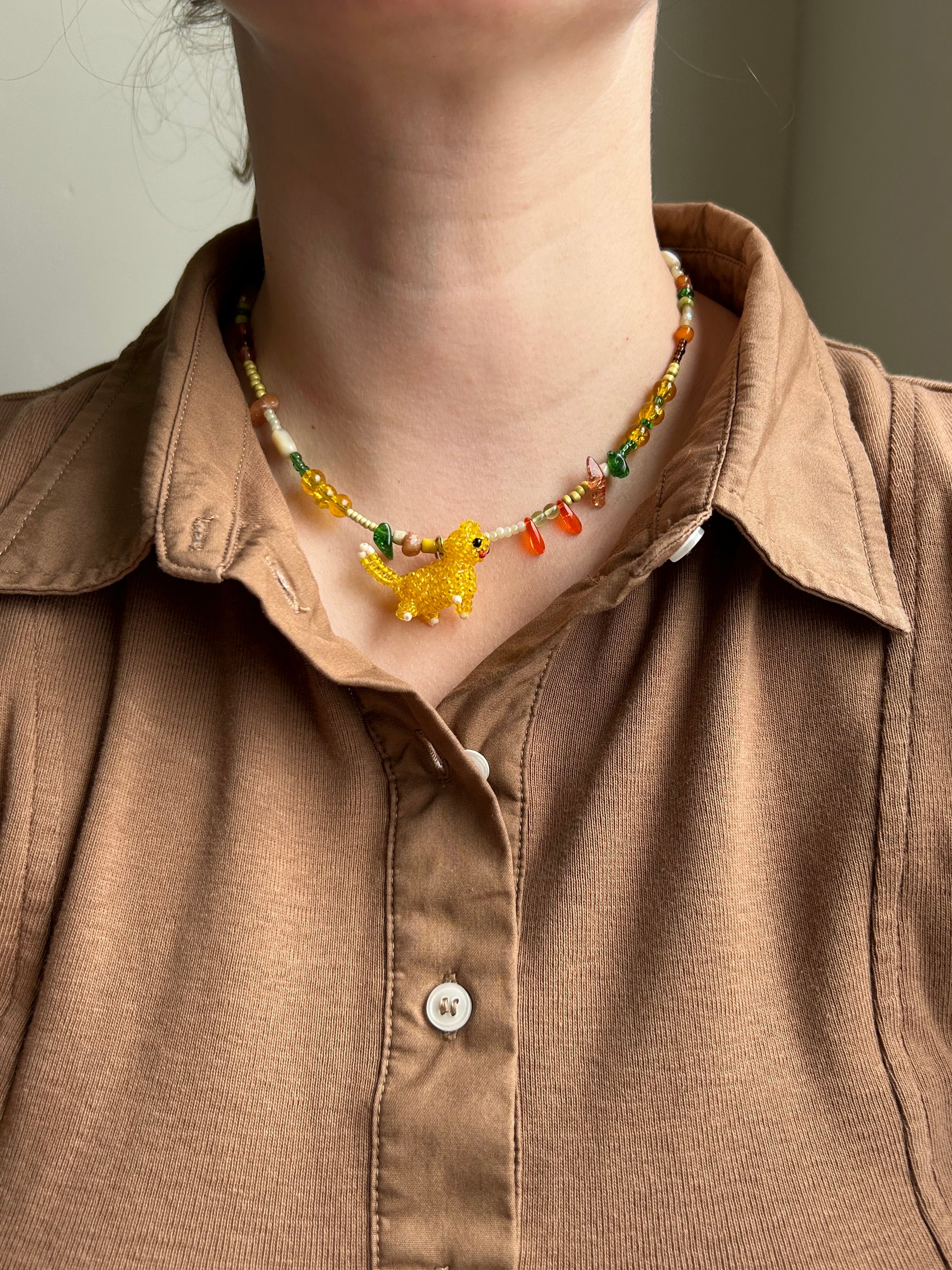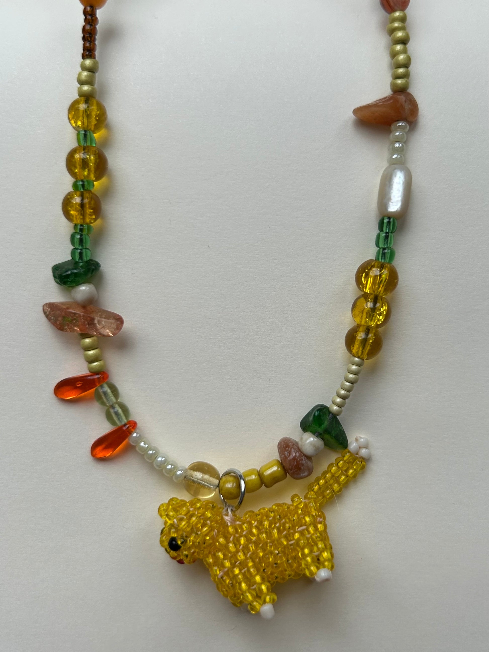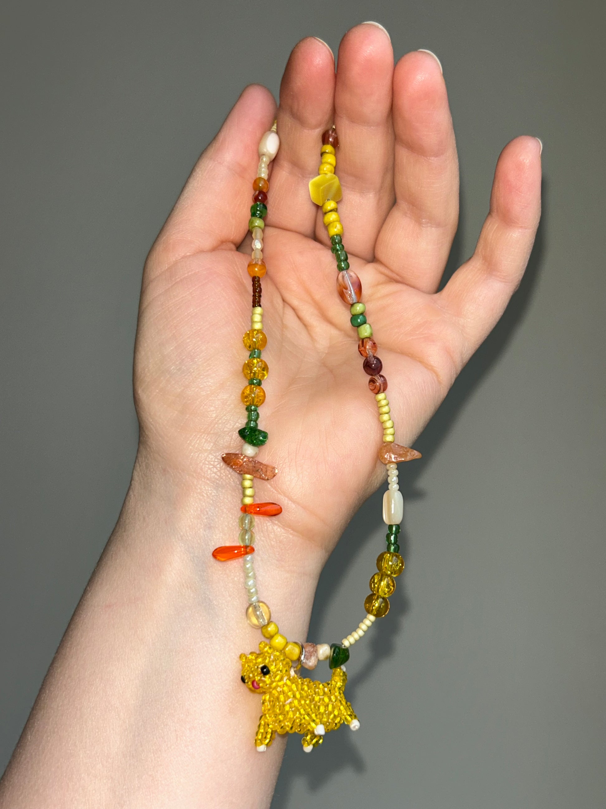 A delicate handmade necklace featuring a charming beaded cat pendant, created with love and attention to detail.